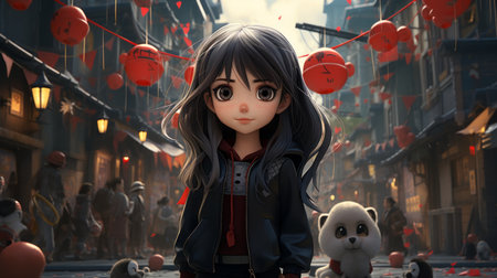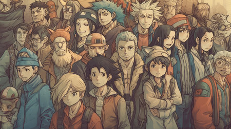 World Anime Day illustration with various 3D style cartoon characters, 3d realistic