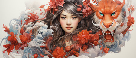 AI Generated of a beautiful woman with long hair in the mountains