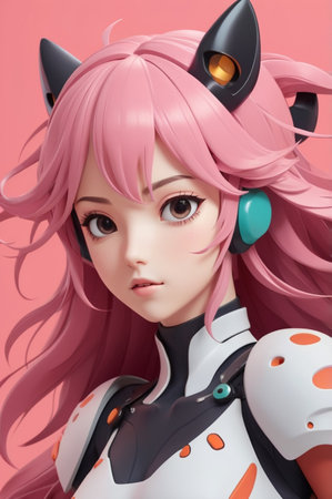 Anime manga girl with pink hair. Anime style. 3d rendering.
