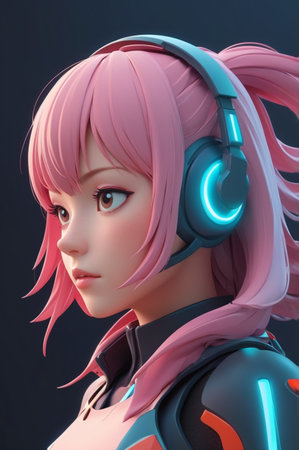 Portrait of a young girl with pink hair in a futuristic style
