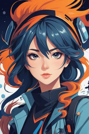 Digital impressionism modern painting beautiful fashion girl portrait. Futuristic details, bright glowing colors. Creativity and art. Wall art print for sale.