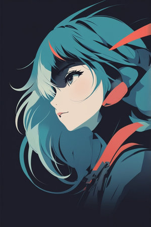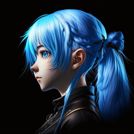 3d illustration of a girl with blue hair on a black background