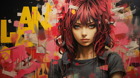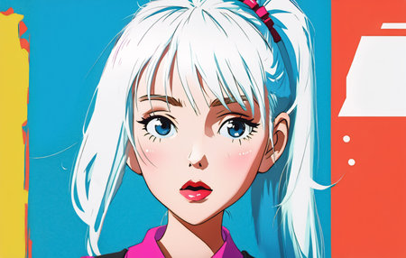 A manga-style illustration of a trendy and playful girl with a fashionable look. This horizontal image captures a young adult with a unique, stylish vibe. Her expressive emotion ranges from playful to a hint of disappointment, reflecting individuality and glamor. Perfect for social media, creative projects, and fashion inspiration.