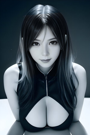 3D rendering of a beautiful girl with black hair and blue eyes