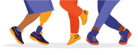 feet and legs of a group of people walking along the streets of the city