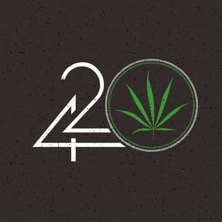 Color text 420 with cannabis leaf inside of circle on grunge background.