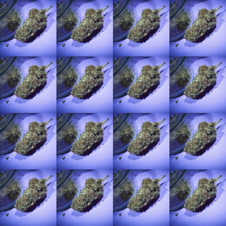 Dark toned Full frame overhead shot of Medical Cannabis leafs