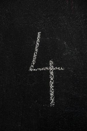 Number 4, four drawn with white chalk on blackboard. Education, school concept