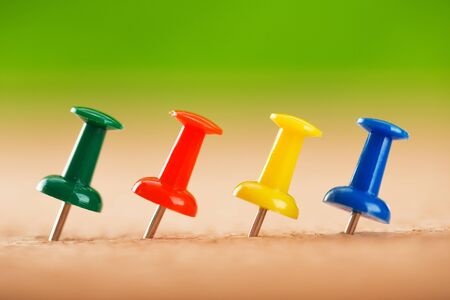 Thumb tacks isolated against colorful background