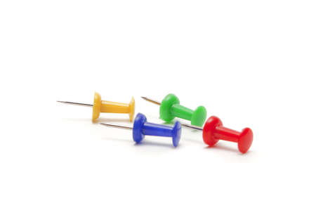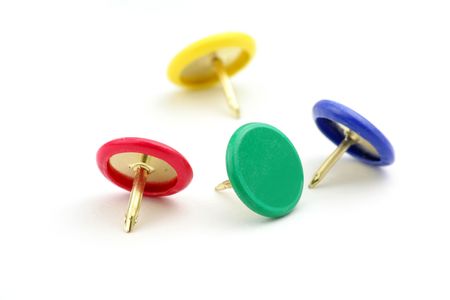 A colorful push pins isolated on a white background .
