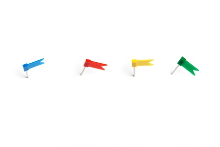 Four color pins on a white background
