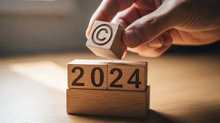 Wooden blocks with the numbers 2022 and a man's hand.