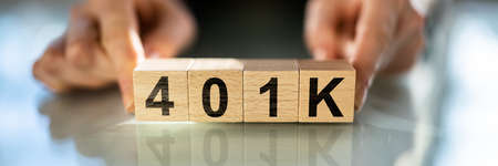 Woman With 401K Blocks. Income Money Investment