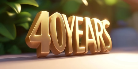 Celebrating 40 Years Golden Anniversary Render with Sunlit Background.