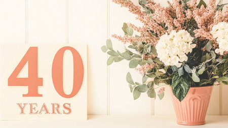 Celebrating 40 Years Pink Glitter Anniversary Decoration with Green Plant.