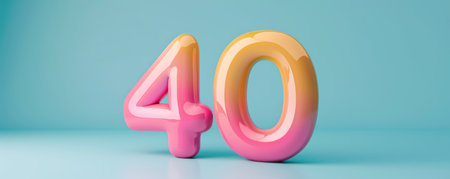 Colorful number 40 on a blue background, vibrant and celebratory theme.