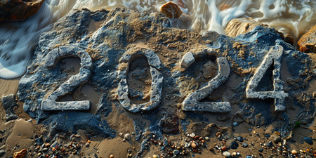 Happy New Year 2024, picture of 2024 numbers on the beach in the morning light generative ai