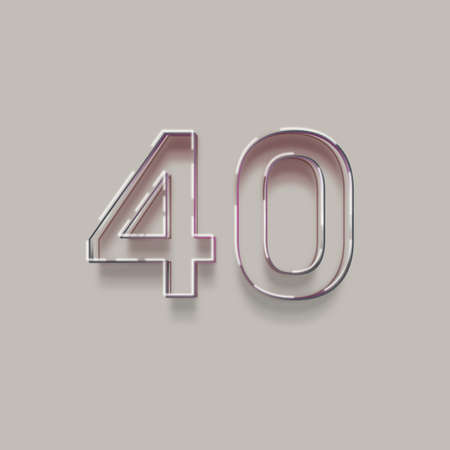 fully editable 3d illustration of metallic number 40 with shadow isolated on grey background