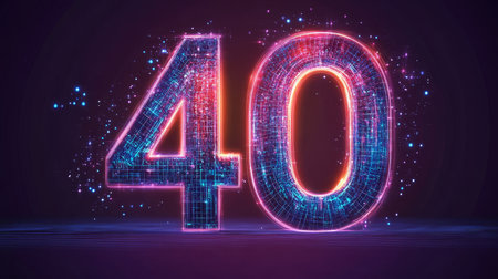 Glowing Futuristic Number 40 with Abstract Network Design Against a Blurred Particle Background.