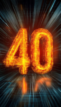 Futuristic digital presentation showcasing sparkling numbers representing forty on cyber wallpaper