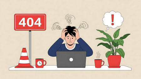 A red and white error 404 not found sign, AI