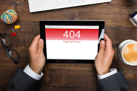 High Angle View Of Businessman's Hand Holding Digital Tablet With Error Screen
