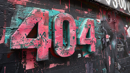 404 error code spray painting with dripping paint and red line on old wall