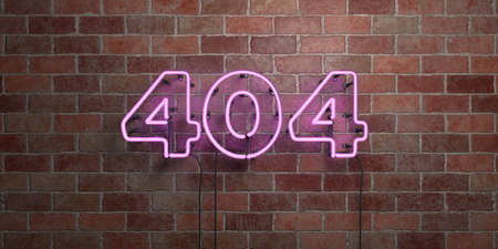 404 - fluorescent Neon tube Sign on brickwork - Front view - 3D rendered royalty free stock picture. Can be used for online banner ads and direct mailers.