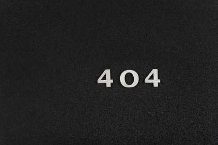 404 white numbers on black background. Close up. Error concept