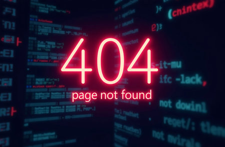 A glowing neon red border frames a bold 404 error sign, set against a dense background of code. This image signifies the iconic web error in a visually striking way. AI generation AI generation