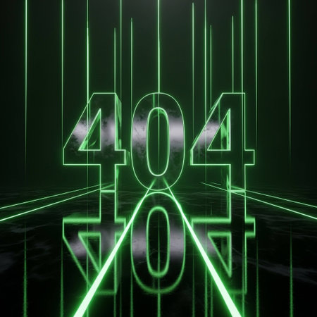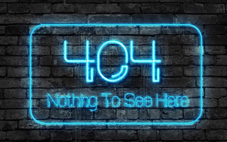 Neon 404 Page Not Found Sign On Abstract Glitch Background, Digital Image of Error Alert