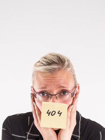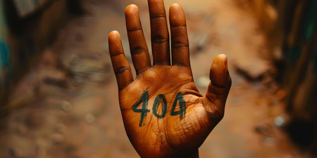 Hand with the word 404 on the palm of the hand. Conceptual image