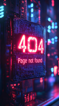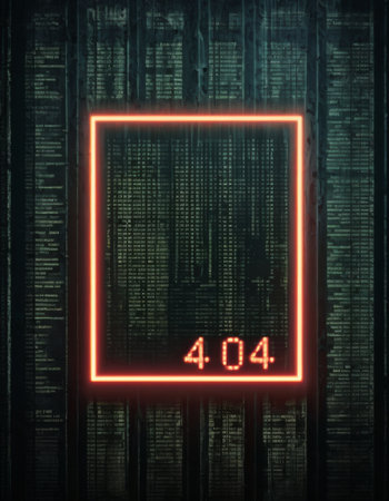 A glowing neon red border frames a bold 404 error sign, set against a dense background of code. This image signifies the iconic web error in a visually striking way. AI generation AI generation