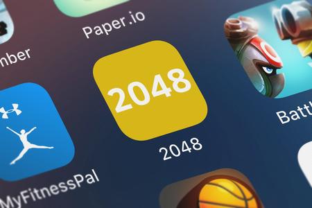 London, United Kingdom - October 03, 2018: Close-up shot of Ketchapp's popular app 2048.