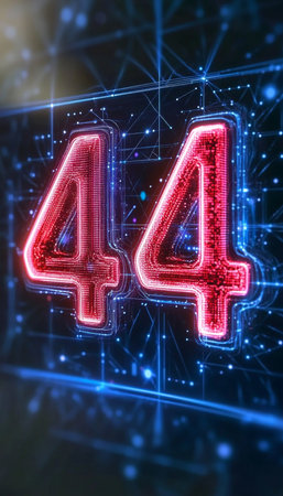 Glowing Digital 3D Number 44 in Futuristic Style on Abstract Background with Glowing Lines