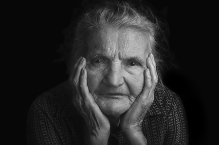 Portrait of a sad elderly woman. Dreaming the past. Selective focus.