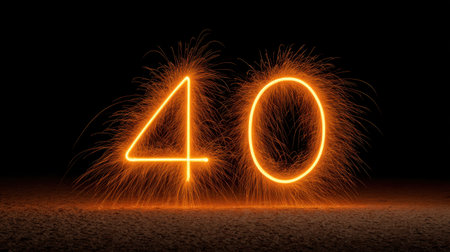 An eye-catching display of vibrant orange sparks forming the number 40 against a dark backdrop, perfect for representing celebration, milestones, or anniversaries.