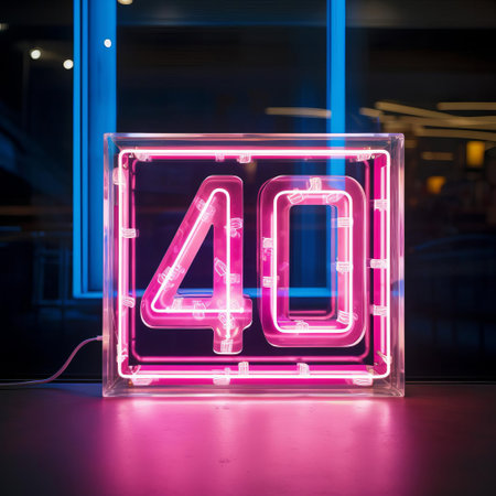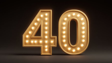 Vibrantly illuminated number 40 showcasing retro bulbs against a dark background. Ideal for marking significant occasions, celebrations, or artistic projects.