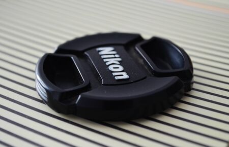 Valencia, Spain - January 28, 2020: Lens cover of a Nikon reflex camera lens.