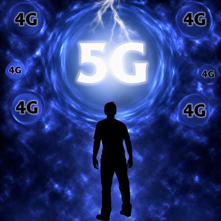 Businessman in transition from 4G to 5G