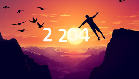 Silhouette of a person at sunset with the numbers 2024.