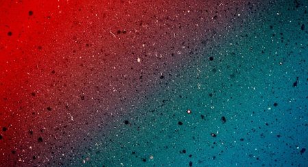 A vibrant abstract background with a gradient of red, purple, and blue colors and black speckles