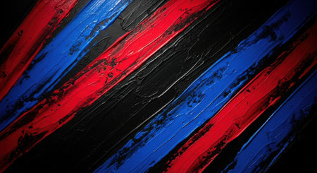 This image features a vibrant and dynamic composition of colorful brush strokes. The brush strokes are characterized by bold lines and a textured appearance, with prominent colors including red, blue, and black. The brush strokes intersect and overlap each other, creating a sense of depth and movement. The overall effect is a visually striking abstract piece that captures the essence of artistic expression.