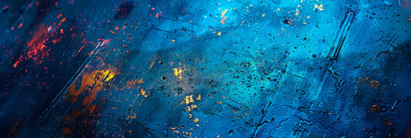 weathered steel surface with scratches, rust, and oil stains, reflecting a neon blue light. Gritty and textured.Generative AI