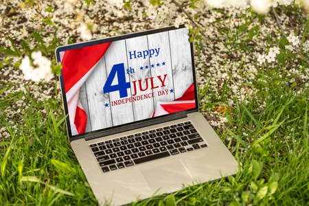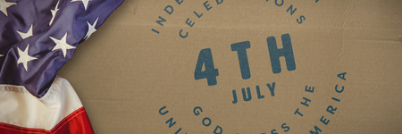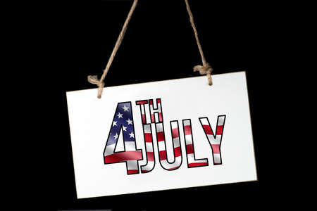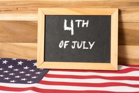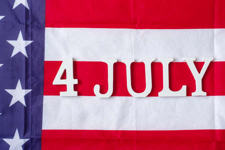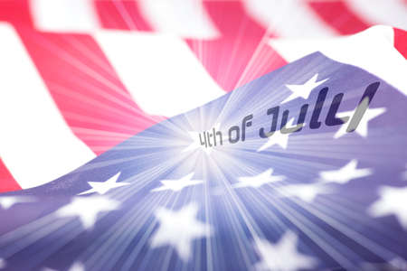 Fourth of July text on United States of America flag background. USA holiday of Independence and celebration concepts