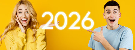 Business concept of 2026 new year symbol. Concept number 2026 Happy new year on beautiful brown brick wall. Beautiful brown brick wall background. Business 2026 happy new year concept. Copy space.