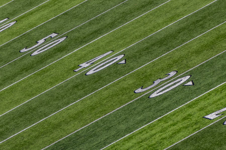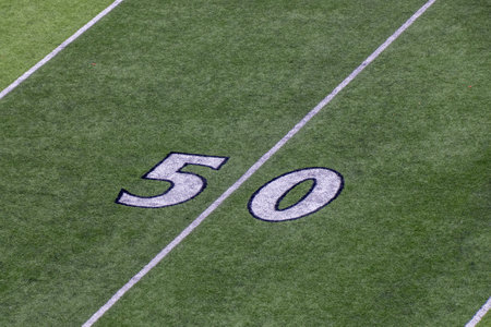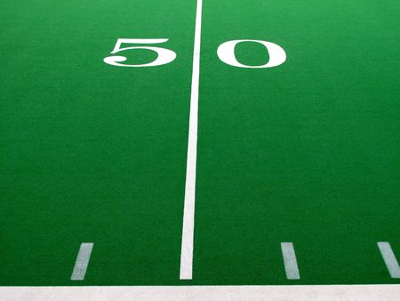 50 Yard Line on American Football Field and Sideline