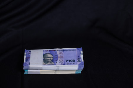 Indian currency multiple five hundred 500 rupees notes isolated on black background for financial marketing purpose.