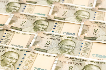 Selective Focus. Profit from business. Texture and background new 500 Indian rupee currency ready for business investment. Corruption clampdown of Indian government with new series of Indian Rupee.