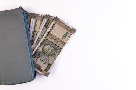 Indian currency with 500 rupees indian note with plain background. Financial concept.